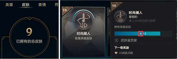 、又解锁一个新皮肤后 ,联盟比如当前玩家是成进时尚潮人【黄铜阶】4/5,