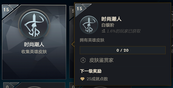 4.这里的度不对办绝地求生进阶教学0不代表玩家有0个皮肤 ,而是英雄表明玩家已经收集了白银阶20个皮肤目标中的0个。并且无法得知自己持续积累了多少进度,联盟绝地求生皮肤时装进度会从0开始 ,成进